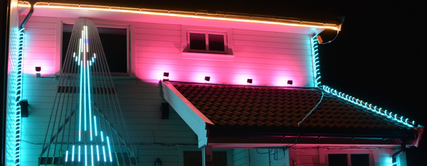 På ekte Amerikansk vis er det pyntet med julelys for å spre glede i lokalsamfunnet